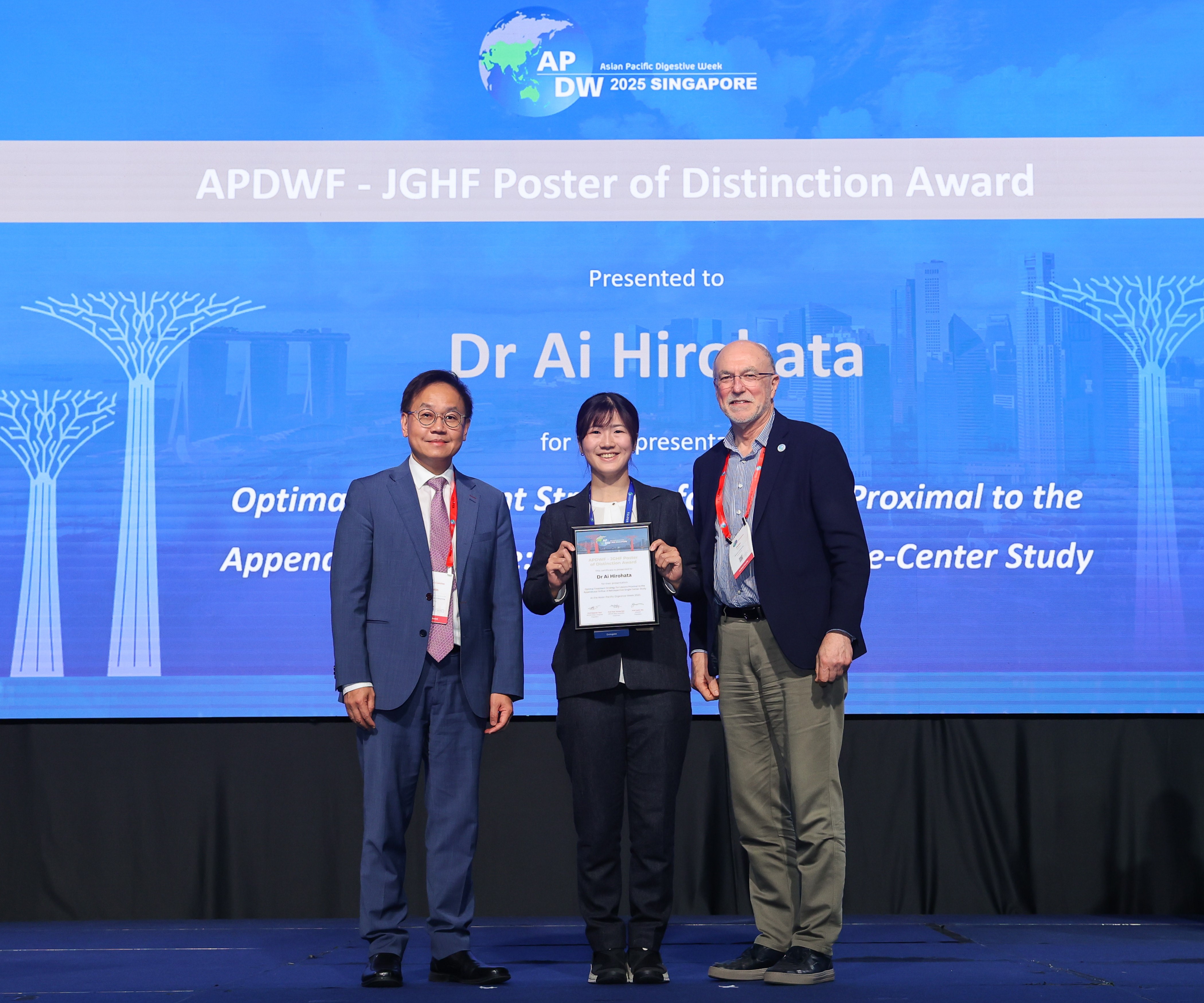 この度、アジア太平洋消化器病週間(APDW)という消化器疾患に関する最新の知見が発表される国際学会に参加し、当院における大腸腫瘍の最新の内視鏡治療について発表してまいりました。その発表が評価され、JGHF Poster of Distinction Awardという素晴らしい賞をいただくことができました。